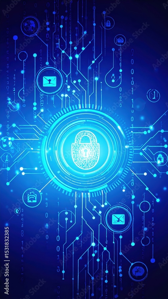 Futuristic digital security interface with data protection and encryption visuals #1531832385