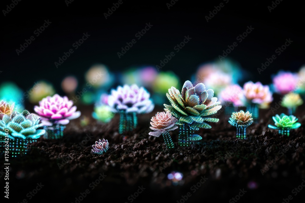 Futuristic LED Succulents in Soil - Vibrant Digital Nature Concept Art. #1786242140