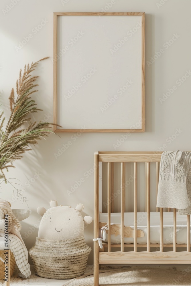 Gallery wall consists of three posters in mockup style hanging from the wall in the nursery. #1440740090