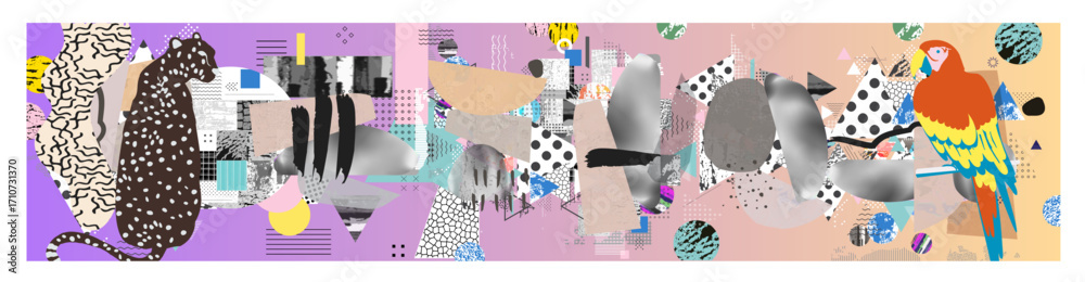 Geometric Abstract Collage with Neon Gradients and Multicolored Shapes. Modern Vector Design for Creative Projects. #1710731370