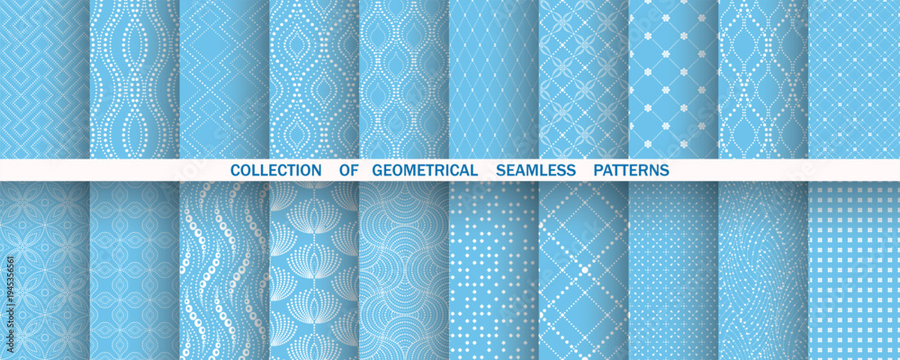 Geometric set of seamless blue and white patterns. Simple vector graphics #1945356561
