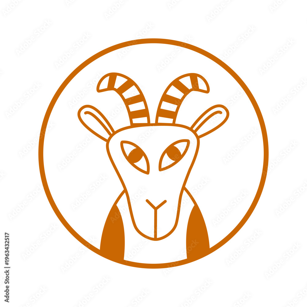 Goat head icon, vector illustration, minimalist line drawing, brown outline, isolated on white background #1963432517