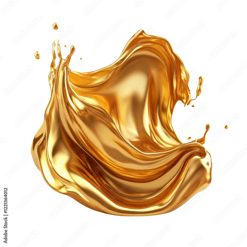 Golden liquid splash isolated on transparent background for creative use #1221364012