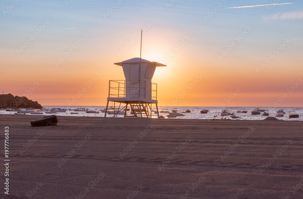 Golden morning view of the sandy beach of Tossa de Mar, Spain #1977716883