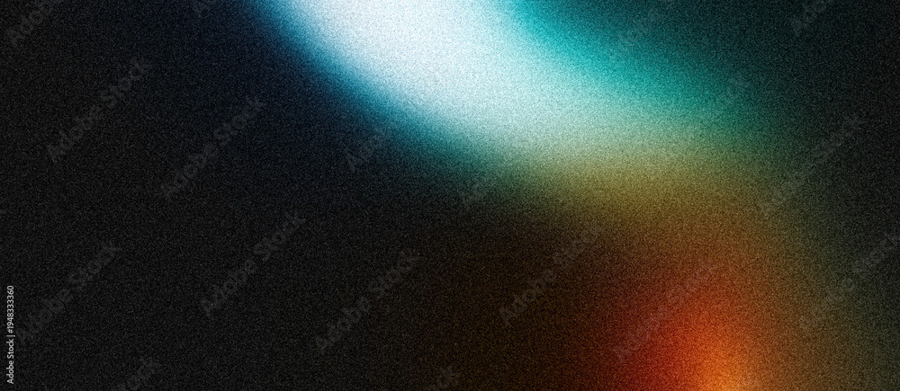 Grainy banner background, glowing teal blue orange abstract gradient shape on dark noise texture backdrop for poster header cover wallpaper design #1948333360