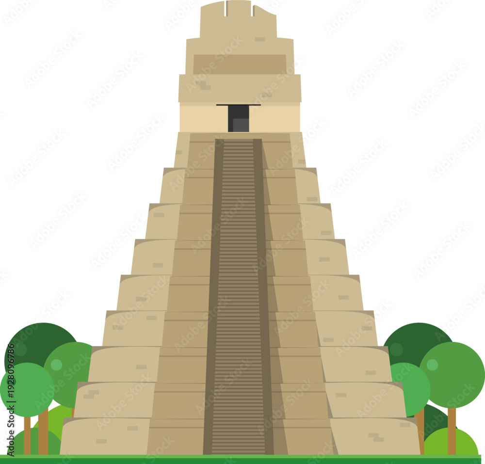 Great Jaguar Temple in Tikal, Guatemala, isolated on white background vector illustration. Monuments and landmarks Series #1928096786