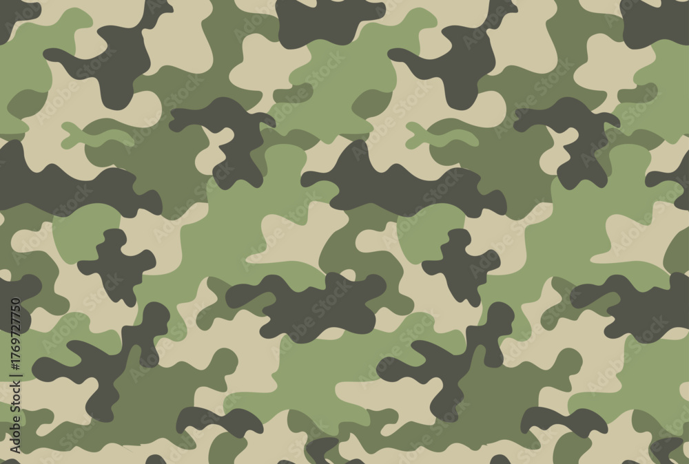 Green camouflage pattern vector texture military background, modern classic print #1769727750