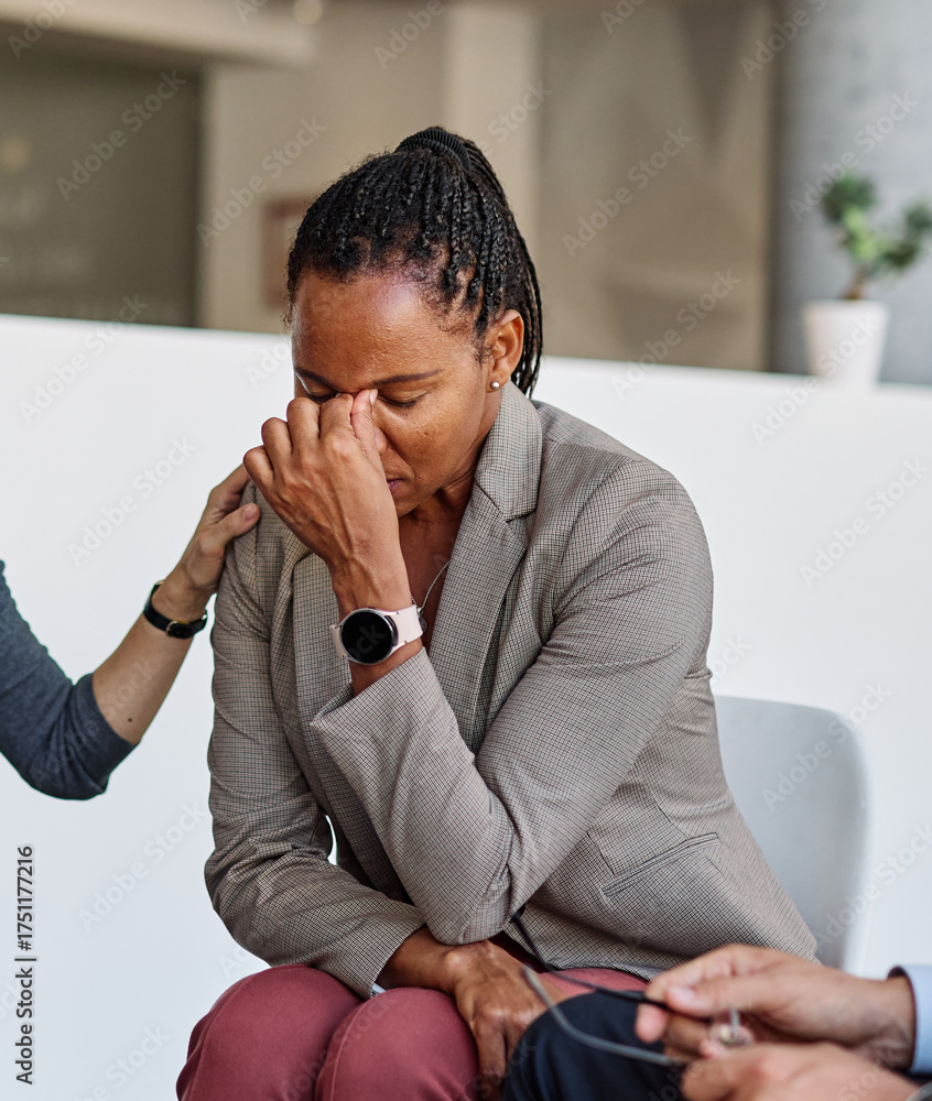 Group psychotherapy. Persons sitting in circle and talking. People meeting. Psychotherapy training, business lecture or conference. Man woman support group #1751177216