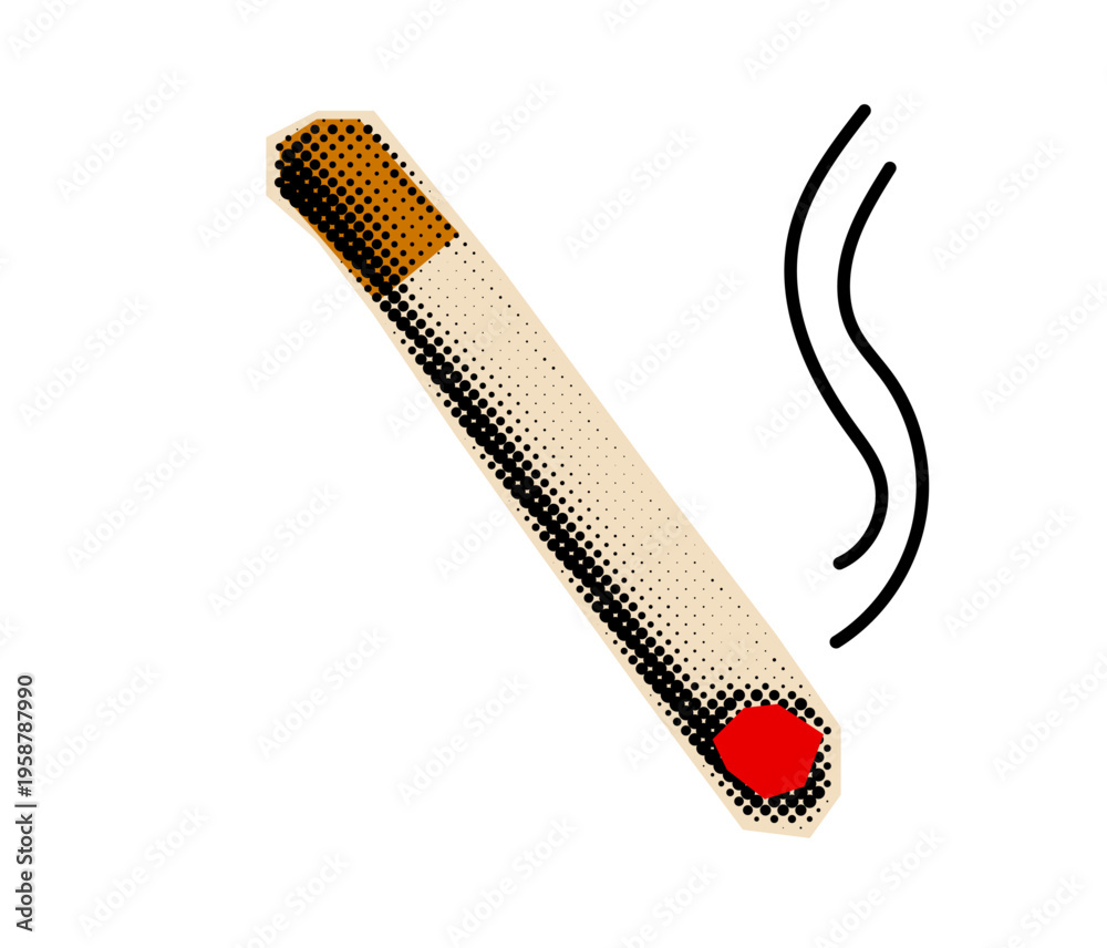 Halftone cutout collage of a smoking cigarette with pop art aesthetic and vintage grunge textures #1958787990