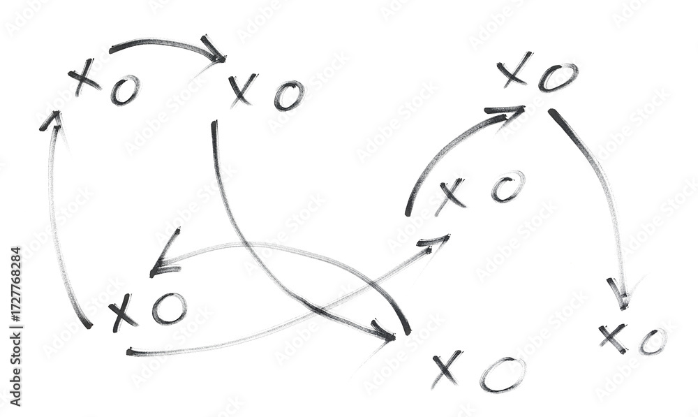 Hand draw strategy game plan for football, basketball, handball, and hockey, sketched black marker, isolated on white, clipping path, design elements #1727768284