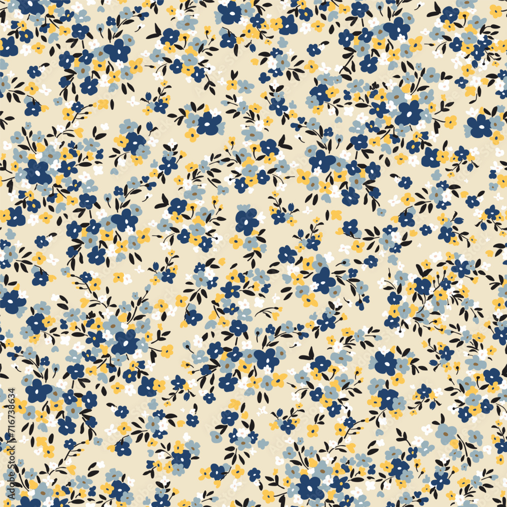 Hand drawn ditsy flowers on a pastel background. Vector seamless pattern #716738634
