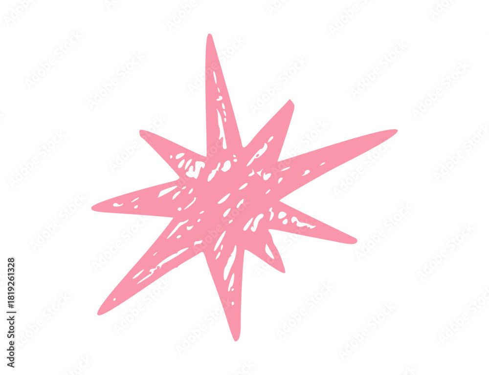 Hand drawn doodle star with pastel crayon texture. Cute celestial icon and sparkle element for party decoration, school projects. Chalk-style sketched twinkling shape. Vector Illustration isolated #1819261328