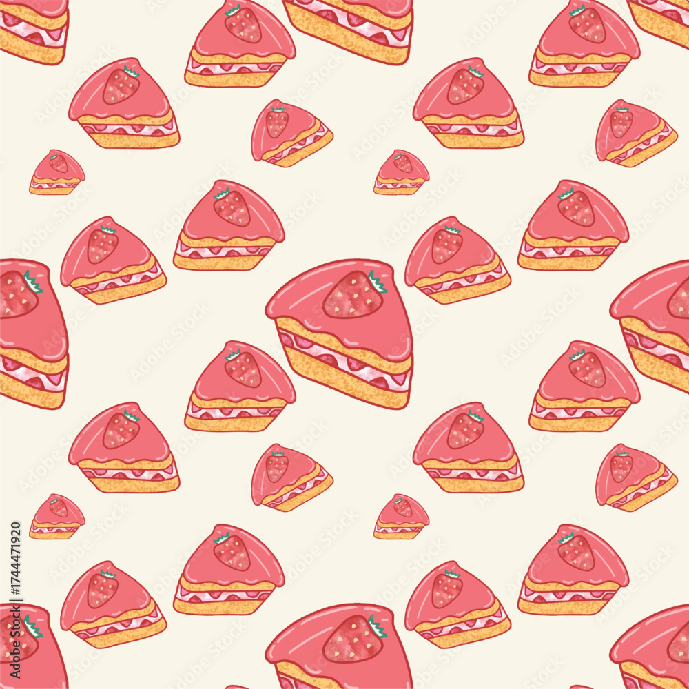 .Hand drawn nostalgic dessert vector illustration. Funny birthday background, poster, social media banner. seamless pattern with cakes #1744471920