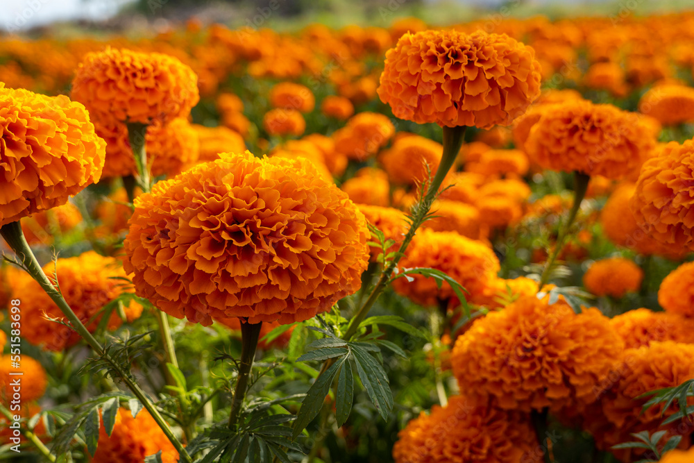 hands of Mexican farmer growing cempasuchil tagete flowers mexico #551583698