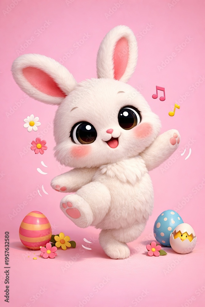 Happy Dancing Easter Bunny on a Pink Background #1957632580