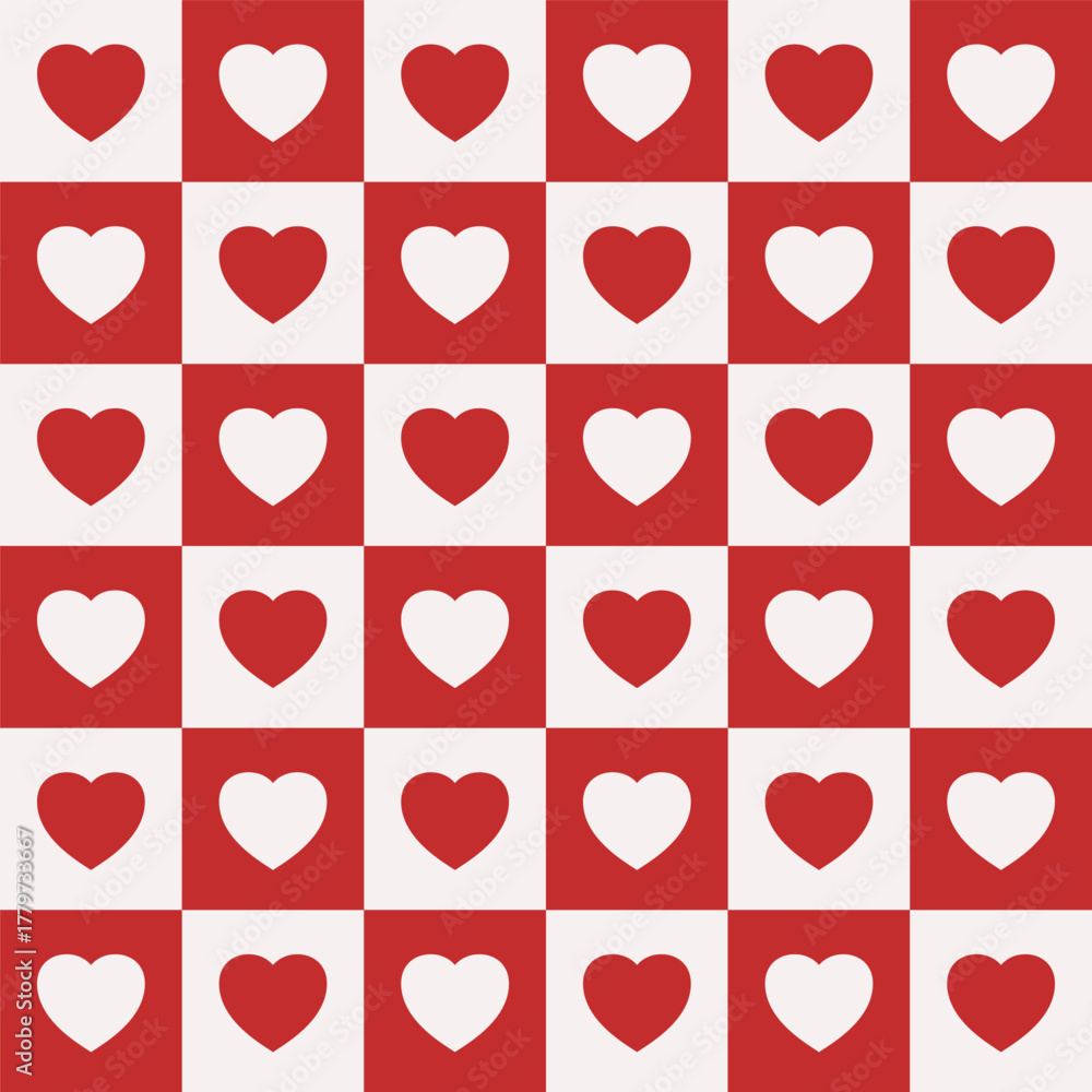 Heart seamless pattern. Red color hearts. Repeating love pattern for design girls prints. Repeated wallpaper. Repeat abstract background. Cute hearth. Girl plaid. Geometric check. Vector illustration #1779733667