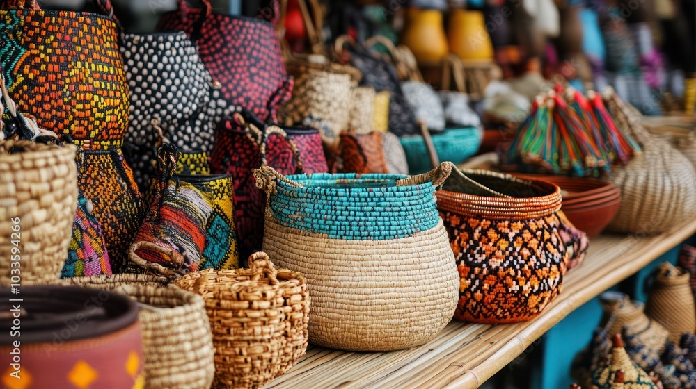Historical craft markets in Nigeria, the Philippines, and Peru offering handmade products that reflect the cultural history and skill of local artisans #1033594266