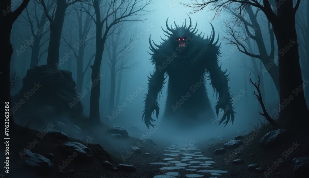 Horror in the woods, a dark, enormous figure is scaring #1762063686