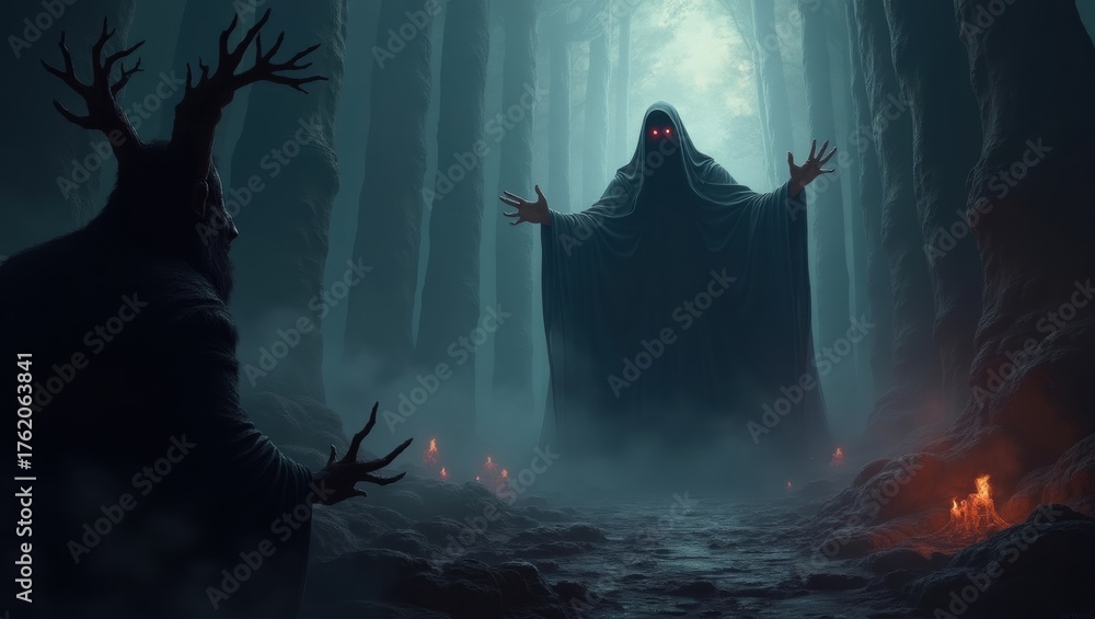 Horror in the woods, a dark, enormous figure is scaring #1762063841