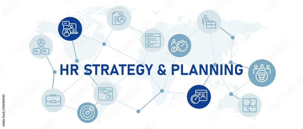 HR strategy and planning concept with icon set human resource management systematic data communication connection relation #1160484565