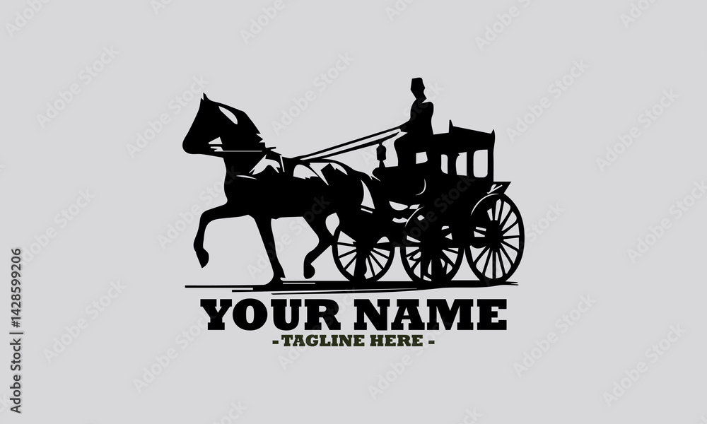 illustration of a classic horse-drawn carriage with a formally dressed driver. Transportation concept, horse carriage silhouette vector illustration isolated and logo horse carriage design #1428599206