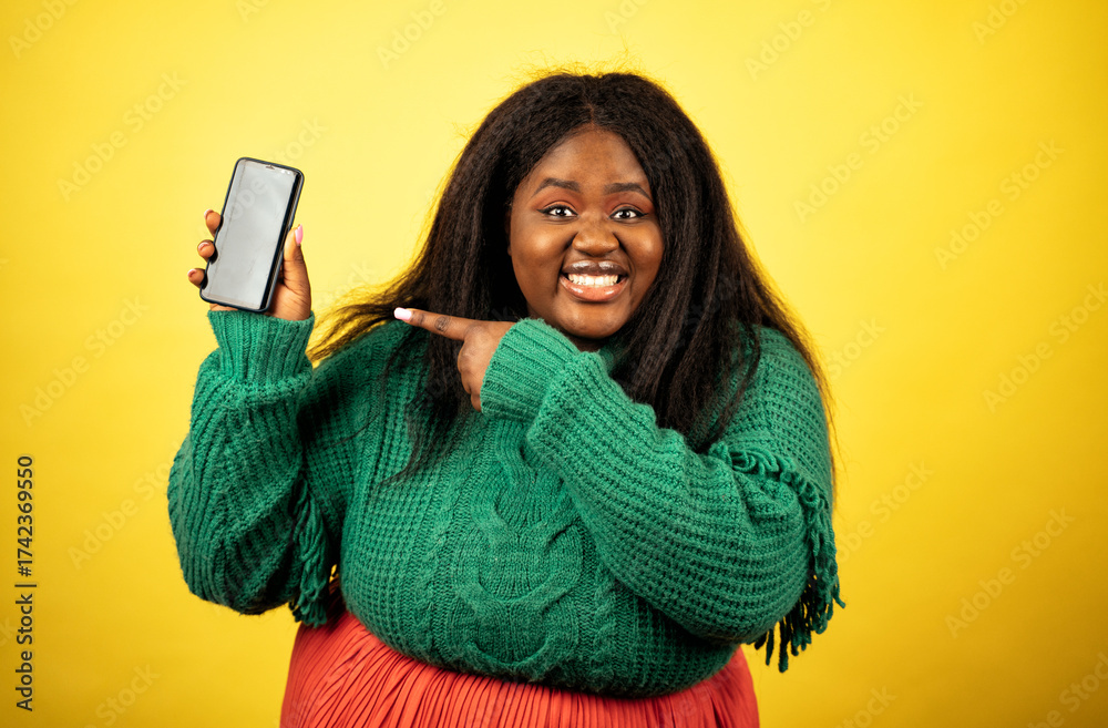 Image of a beautiful woman posing in casual clothes on a yellow background #1742369550