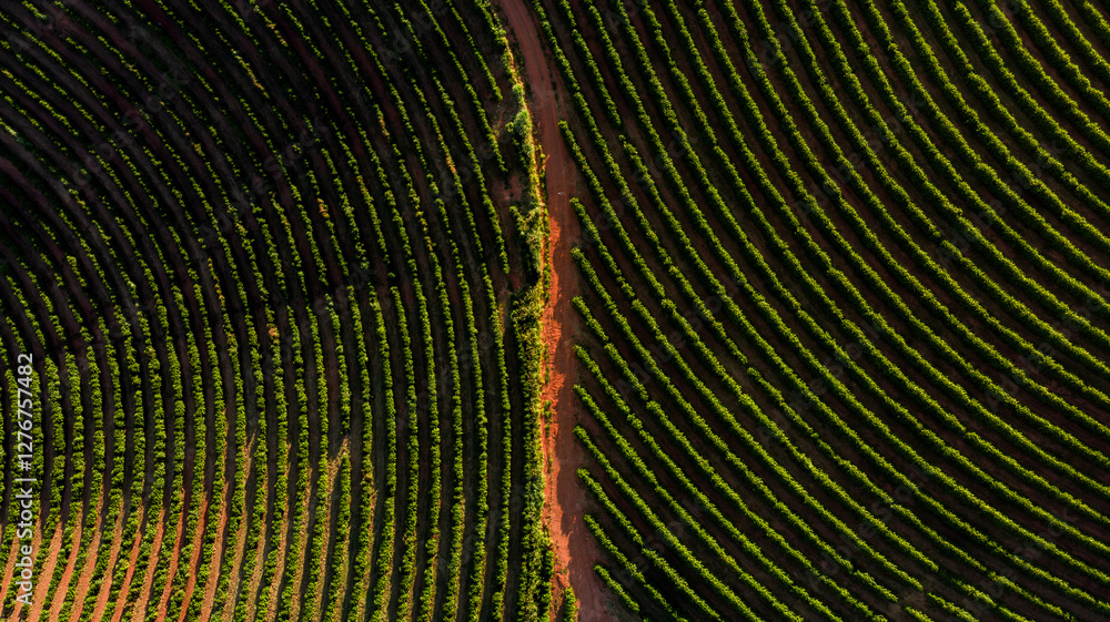 Imagem aérea de drone - Fazenda de plantação de café, Minas Gerais, Brasil #1276757482