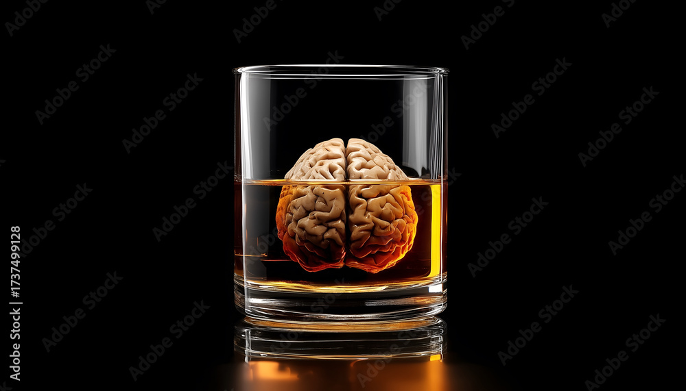 Impact of Alcohol, Human Brain Submerged in a Glass of Liquor #1737499128