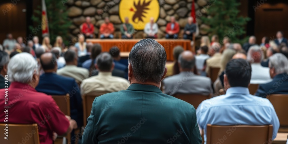 Indigenous elders and legal experts drafting land preservation laws, Canada. #1296102124
