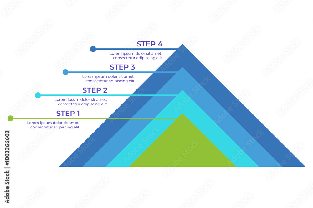 Infographic illustrating pyramid structure divided into four sections, each representing step in process. Steps guiding viewers on how to achieve their goals effectively #1803366603