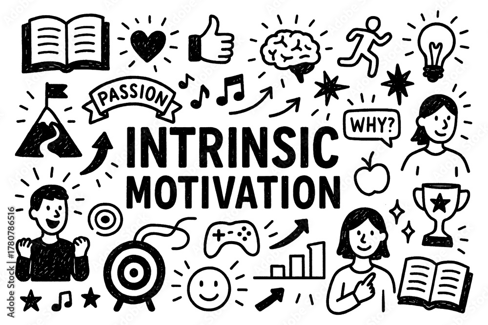 Intrinsic motivation doodle with passion, creativity, and personal growth icons, Transparent Background #1780786516