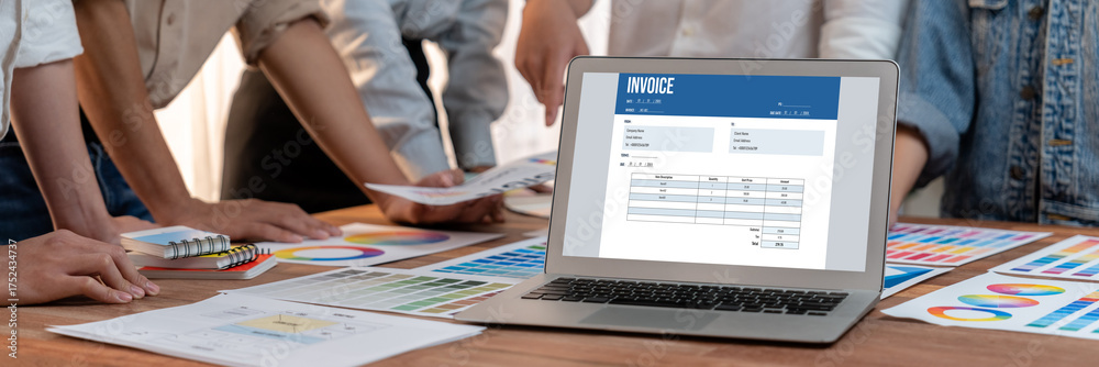 Invoice on computer screen from accounting application. Computer program for financial and budget of corporate business. brisk. #1752434737