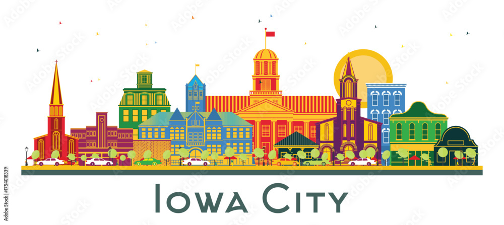 Iowa City Skyline with Color Buildings isolated on white. Illustration. Business Travel and Tourism Illustration with Historic Architecture. Iowa City Cityscape with Landmarks. #1754018339
