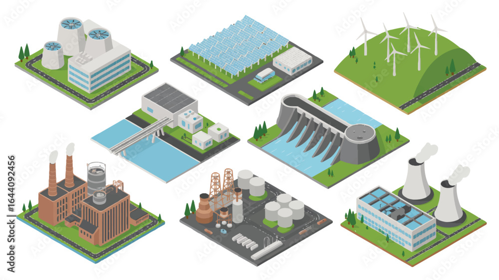 Isometric Power Generation Collection Renewable Energy Resources and Fossil Fuel Plants Diverse Clean and Polluting Energy Solutions #1644092456