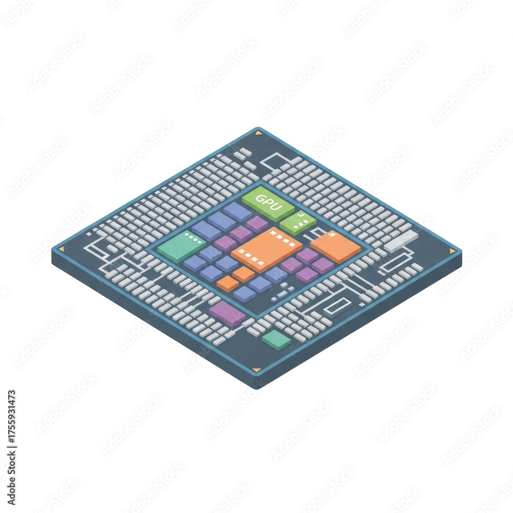 Isometric view of a computer chip with colorful internal components and G P U label icon 2025-2026 transparent isolated on white background png 4k full hd download #1755931473