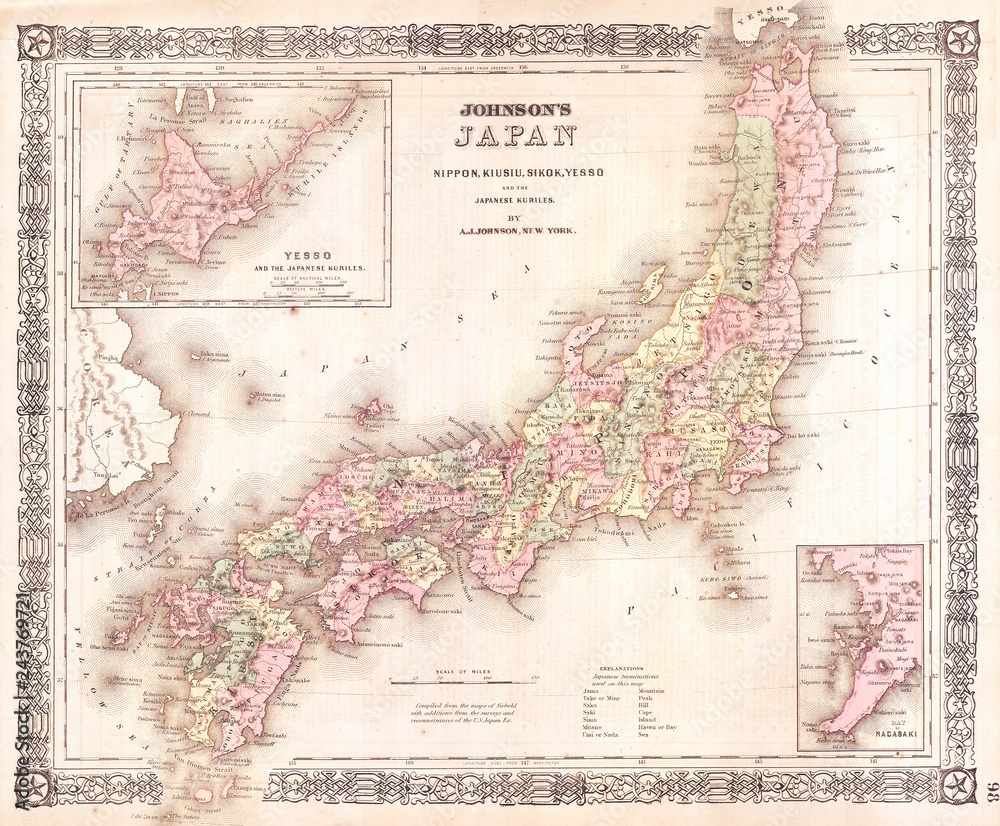 1864, Johnson's Map of Japan, Nippon, Kiusiu, Sikok, Yesso and the Japanese Kuriles #243769721