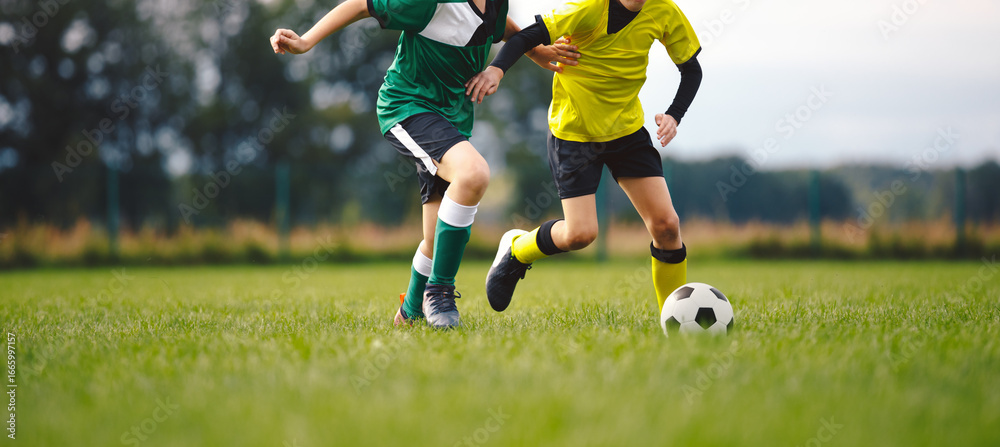 Kids Playing Soccer Match Outdoors – Youth Football Training, Team Sports, Healthy Activity, Grass Field Competition, Junior Players in Action #1665997157