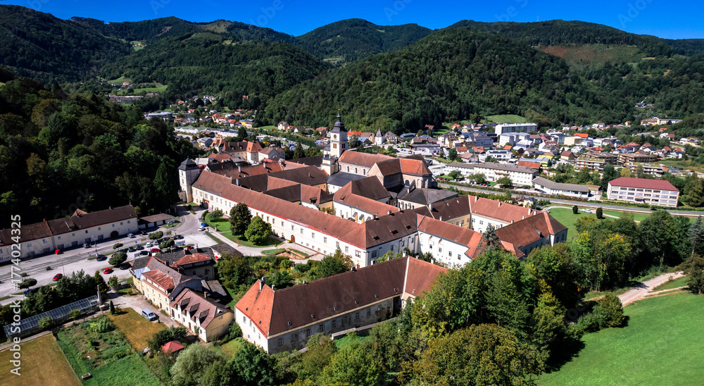 Lilienfeld Cistercian Abbey - medieval Austrian monastery, largest in Austria. aerial drone high angle view. Austrian tourism and historic landmarks #1774024325