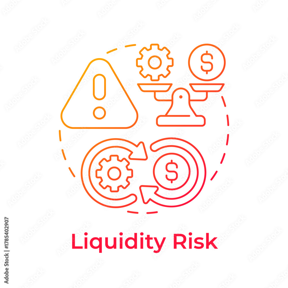 Liquidity risk red gradient concept icon. Financial management, money funds. Balance scales. Round shape line illustration. Abstract idea. Graphic design. Easy to use in infographic, presentation #1785402907