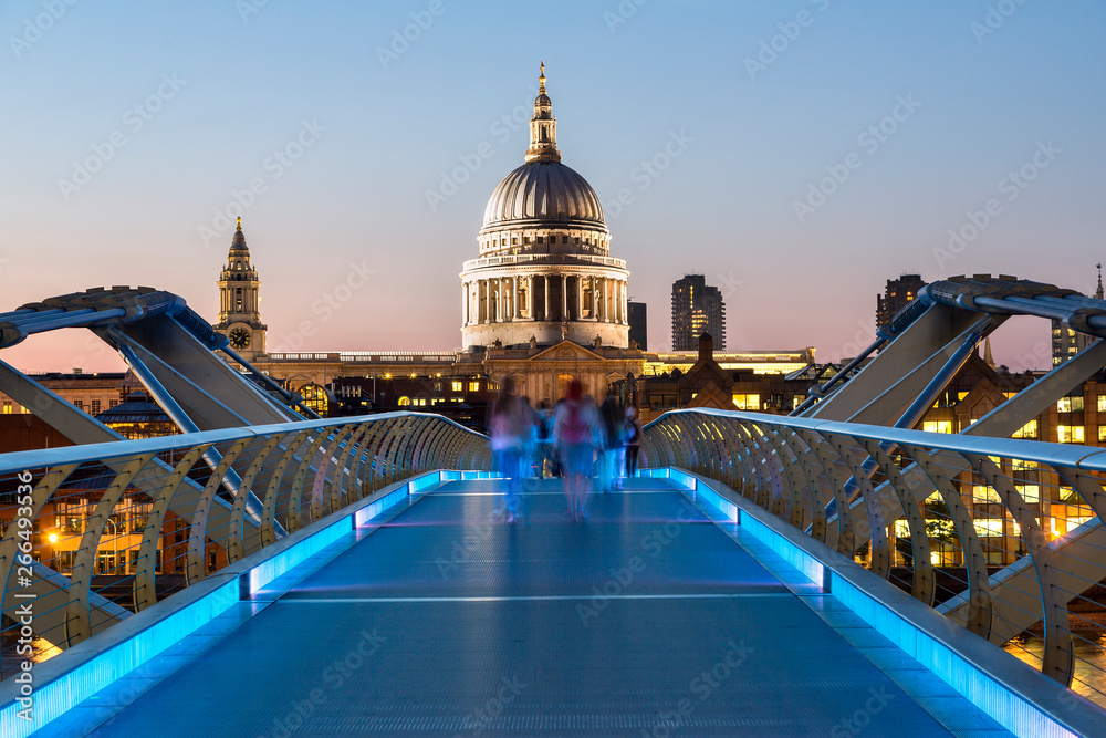 London, London Millennium Footbridge and St. Paul's Cathedral at night #266493536