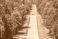 Long asphalt straight road through the forest. Road with ups and downs. Sunny and cloudy day. #280261607