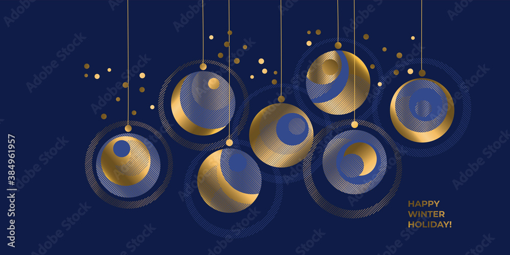 Luxury elegant golden xmas baubles on blue #384961957