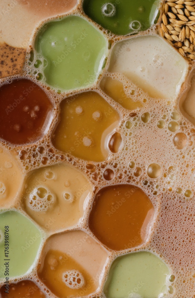 Macro composition of hexagonal cells filled with organic materials and liquid textures #1763918768