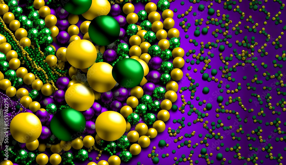Mardi gras carnival decorations beads green and yellow celebrations. generative ai #555762275