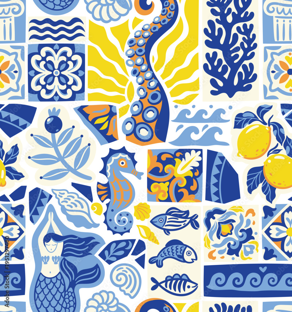 Mediterranean Mosaic Dream seamless pattern, vector style #1951297480