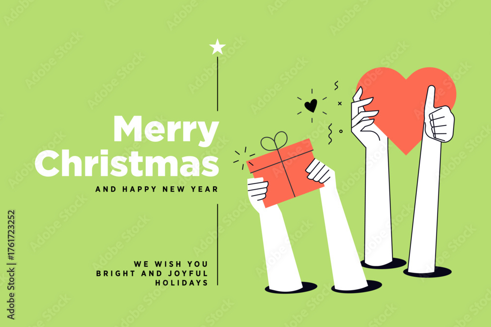 Merry Christmas and Happy New Year banner. Vector illustration for website banner, social media banner, greeting card, marketing material. #1761723252