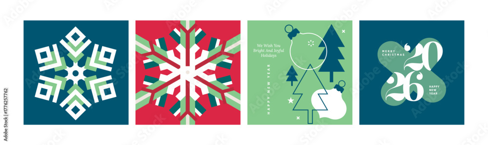 Merry Christmas and Happy New Year greeting cards. Vector illustration templates for holiday greeting card, background, website and social media banner, marketing material. #1776257762