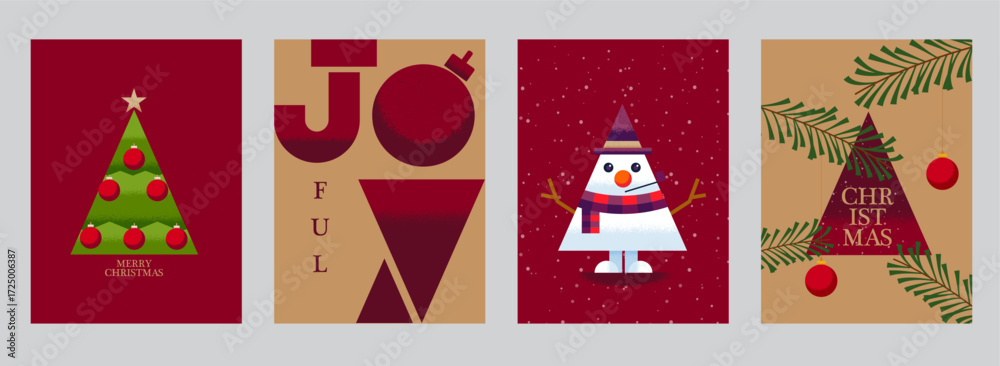 Minimal Christmas Greeting Card Collection with Geometric Holiday Illustrations #1725006387