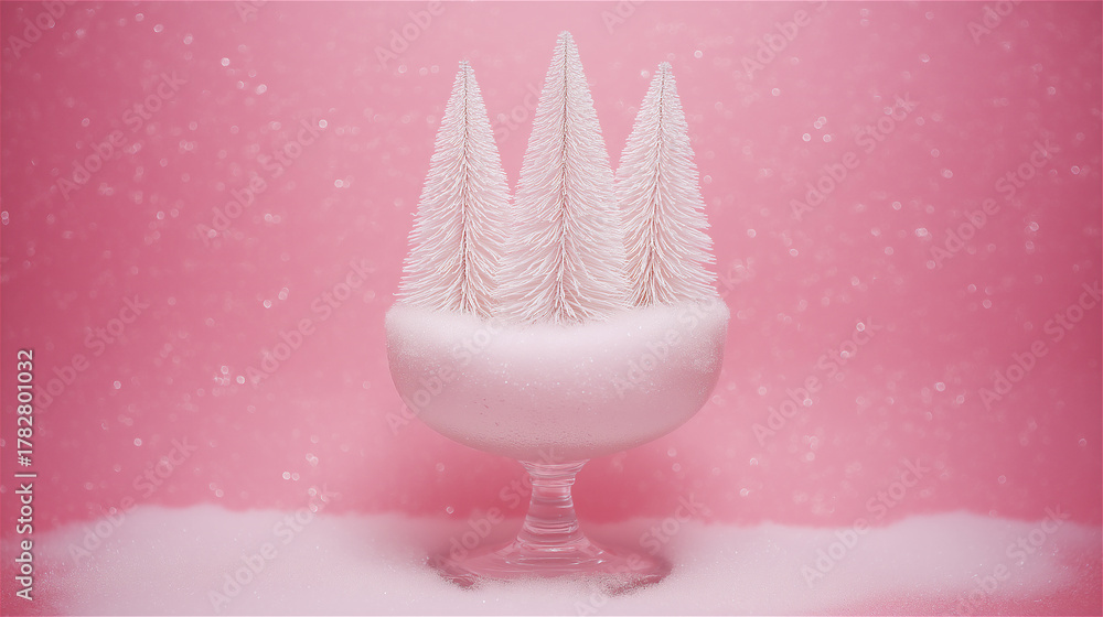 Minimalist white Christmas trees in pink background, concept of modern holiday design, celebration and winter season with copy space. #1782801032