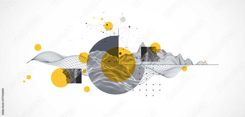 Modern science and technology background. Abstract wireframe art. Vector. #1777636005